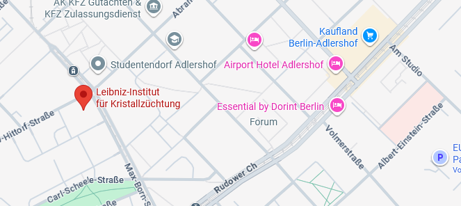 Meeting point: WISTA Event Center (Rudower Chaussee 17, 12489 Berlin). A member of IKZ will pick you up and walk you to the institute.